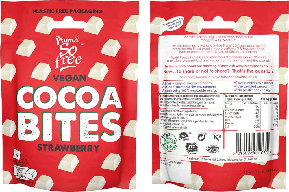 So Free Smooth Reis Konfekt Erdbeere - weiße Schokolade(Plamil). Nussfrei, laktosefrei, glutenfrei, vegan