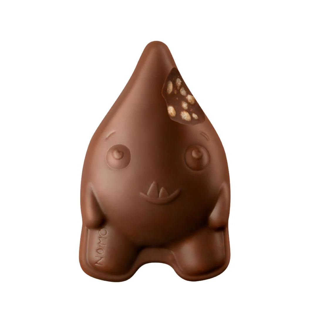 Crispy Mo-Figur aus veganer Schokolade mit Reisdrinkpulver (18%) und Reiscrispies (6%).