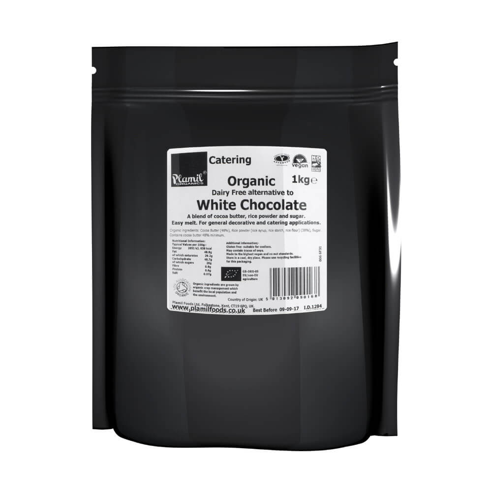 1kg white chocolate drops made from chocolate - So free Fair-Trade (Plamil) is backordered and will ship as soon as it is back in stock.