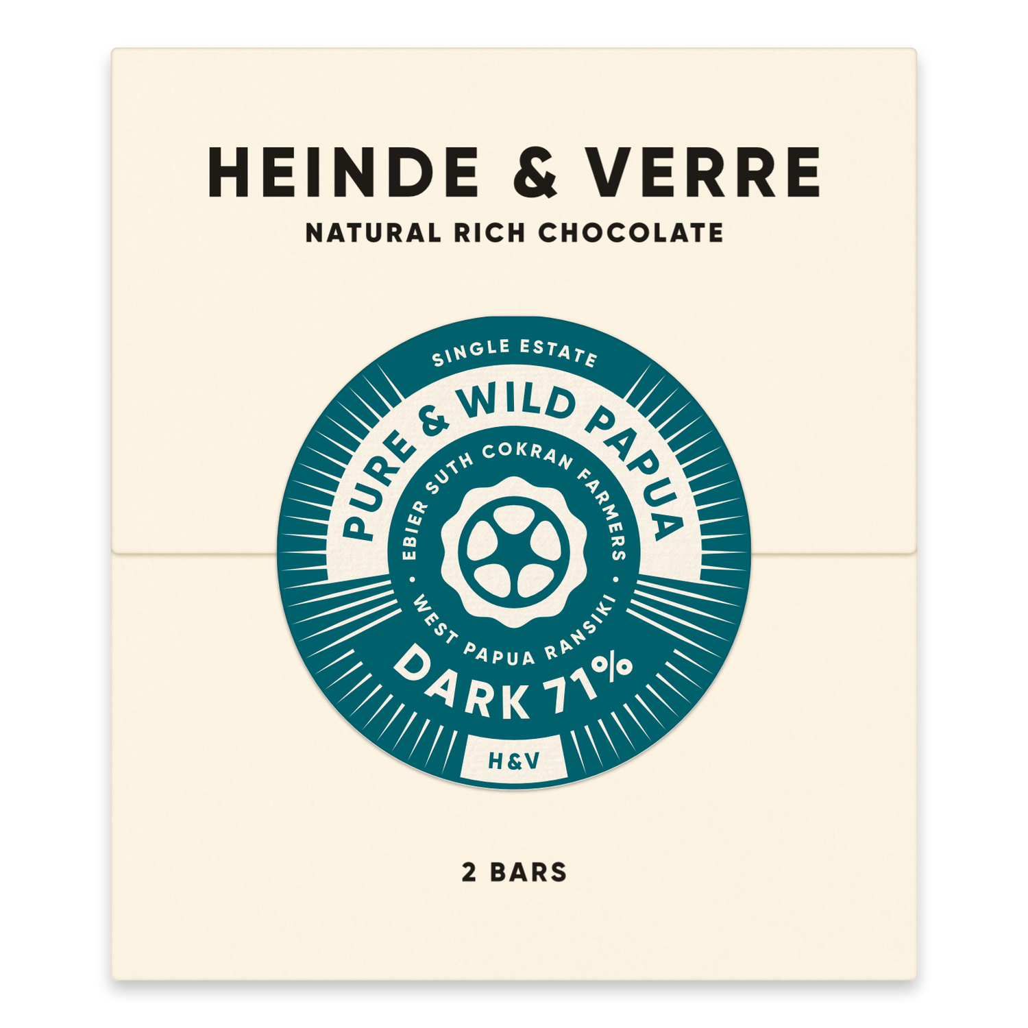 Each Heinde & Verre chocolate box contains two individually wrapped 35g bars. "One bar for now, one bar for later," Jan-Willem explains the idea behind it. One bar for now, one for later. Heinde & Verre takes the quality of their chocolate and its enjoyment very seriously. Therefore, they have developed perfect packaging to preserve all the natural flavors. An aluminum bag protects against light, moisture, dust, and dirt. A double, airtight seal protects the quality chocolate from odors. Some of the air is extracted to reduce oxidation and moisture. The modern packaging contains all the important information about the chocolate variety. If you want, you can use the QR code to learn more about where the beans come from, how the chocolate is made, and what it tastes like. When you unwrap the packaging, the Heinde & Verre philosophy is revealed inside: transparent and sustainable. Now it's time to enjoy!