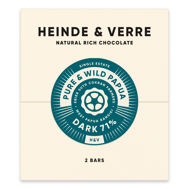 The original Dutch chocolate tradition is renowned for the art of blending premium cocoa. Heinde & Verre have created a harmonious blend of certified organic cocoa from Latin America, the Caribbean, and Indonesia. The result is a bar with a generous, complex, and long-lasting flavor.