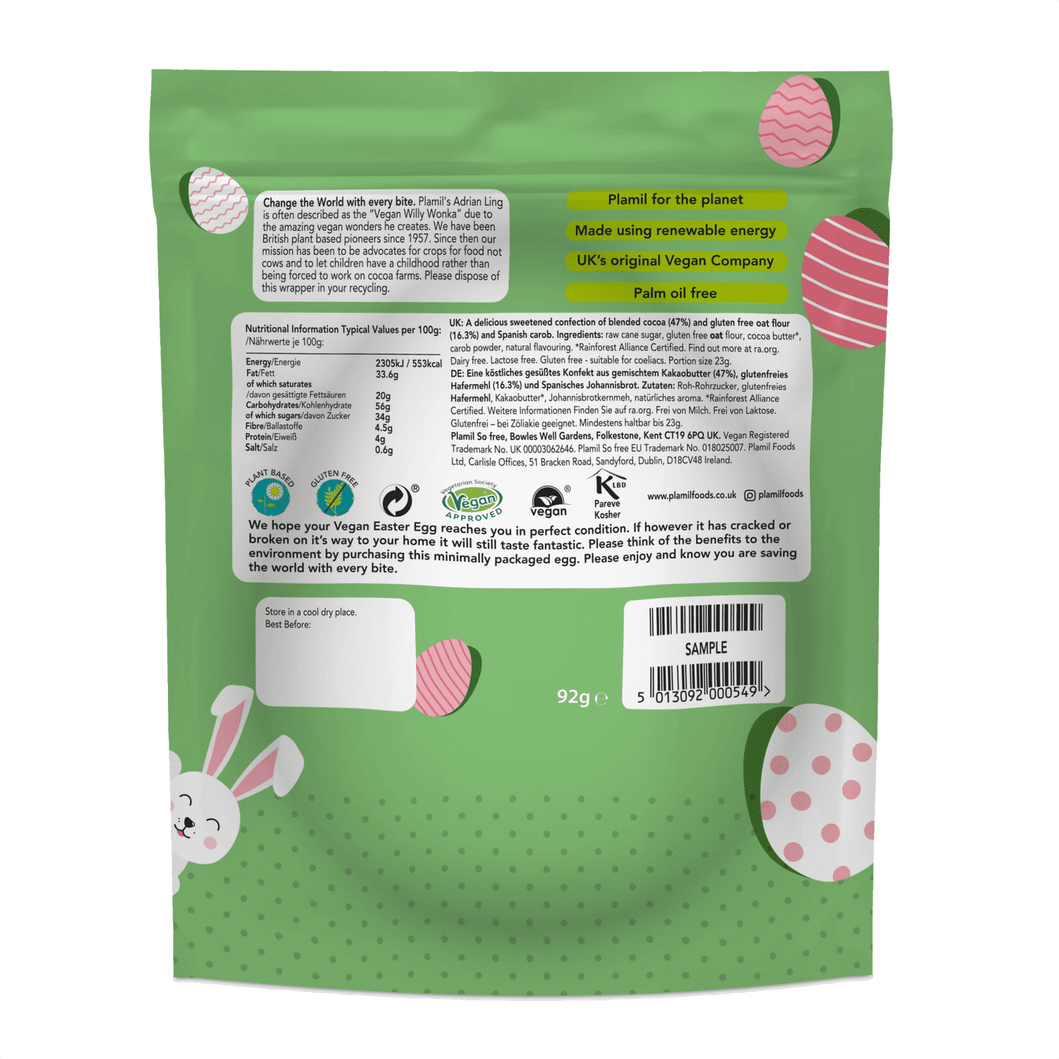 Easter egg made from milk chocolate alternative with carob - So free Fair-Trade (Plamil) is backordered and will ship as soon as it is back in stock.