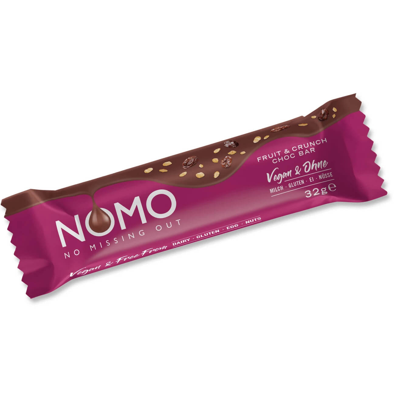 Diese neue Schokolade ist vegan, zusätzlich frei von Milchprodukten, Gluten, Ei sowie Nüssen und so cremig lecker. Der NOMO Fruchtig mit Crunch Choc Riegel ist mehr als nur eine Alternative zur herkömmlichen Milchschokolade und lässt Schokoladenliebhabern das Herz höherschlagen. Probiere es aus und lasse die zartschmelzende Schokolade auf der Zunge zergehen.